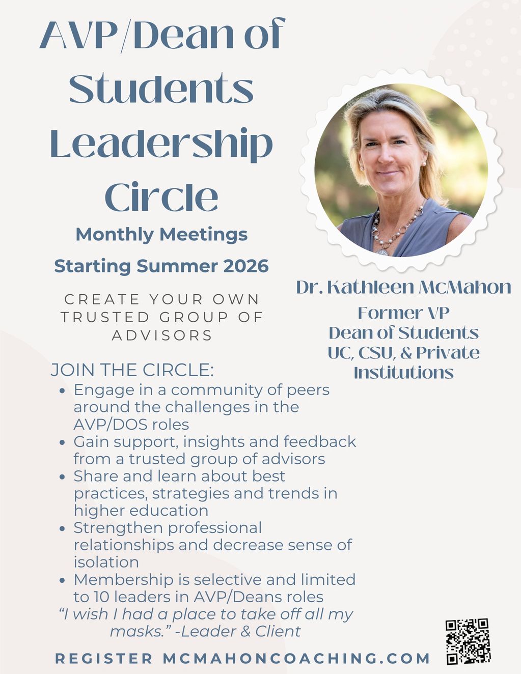 To inquire email Kathleen@McMahoncoaching.com